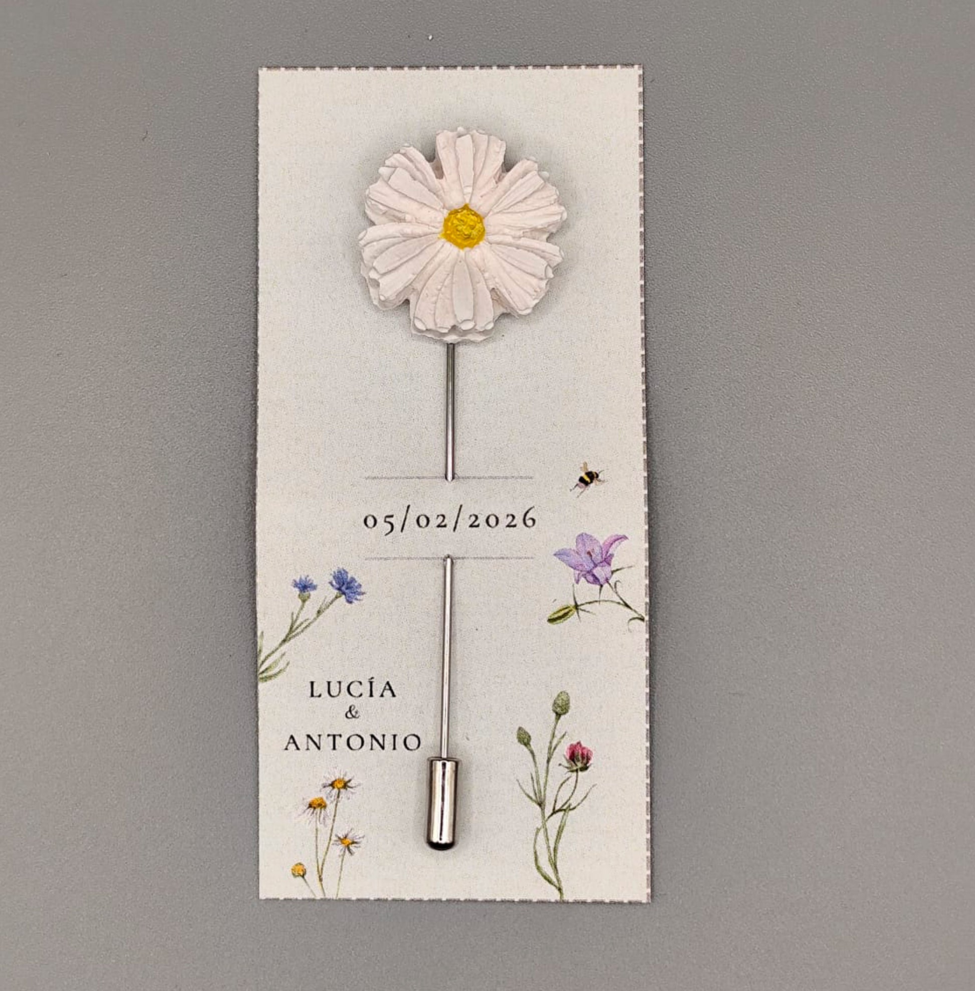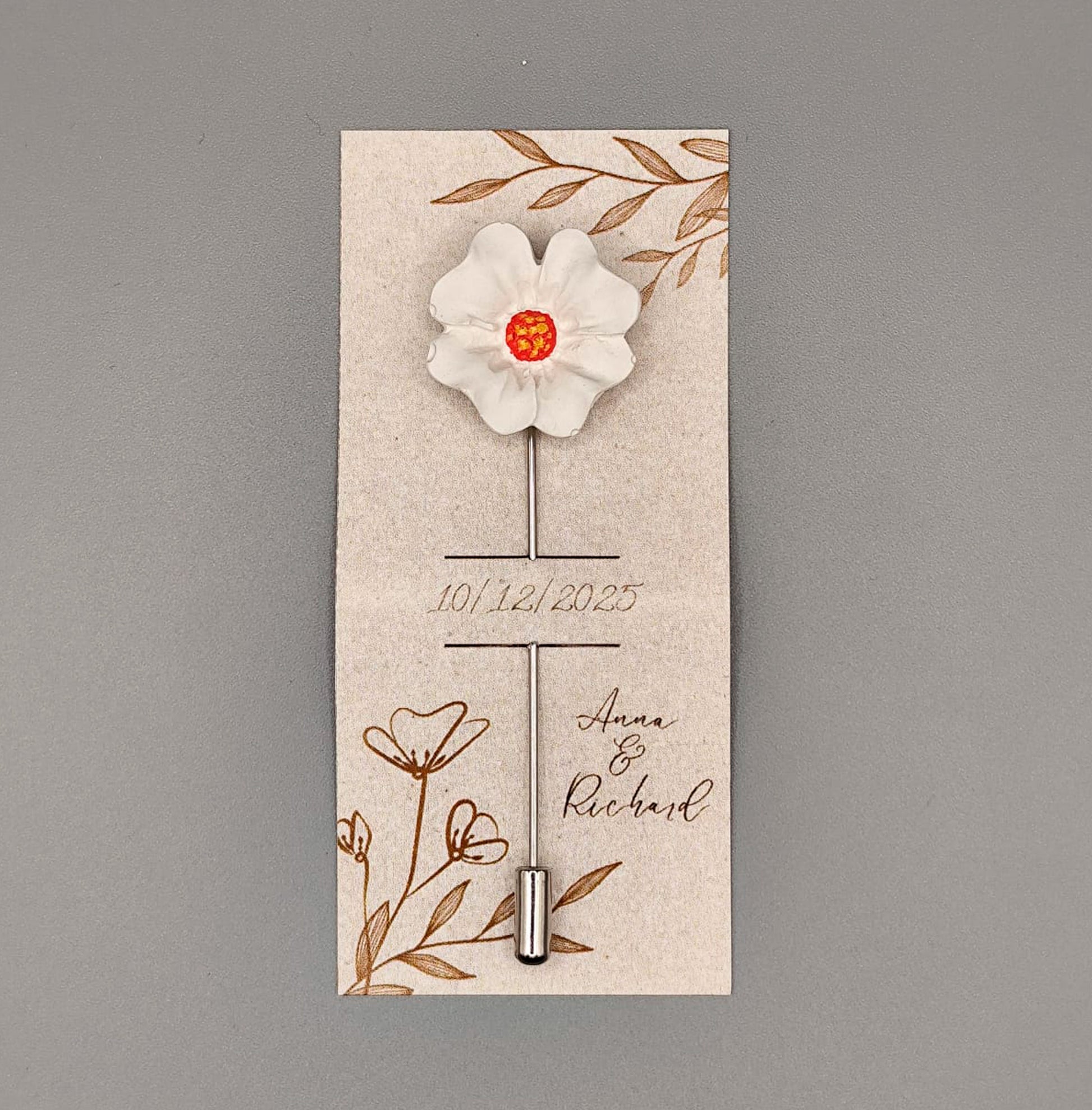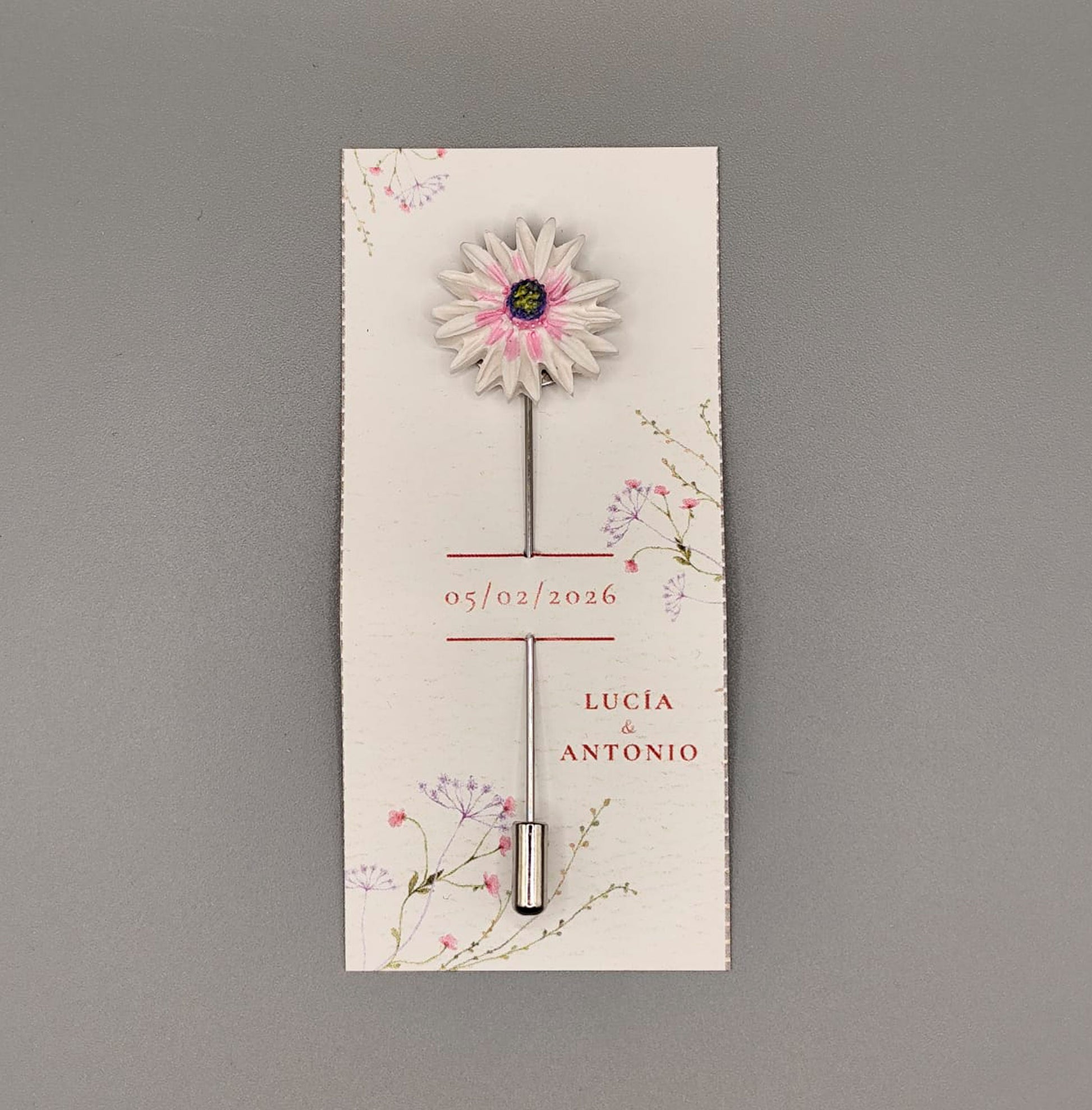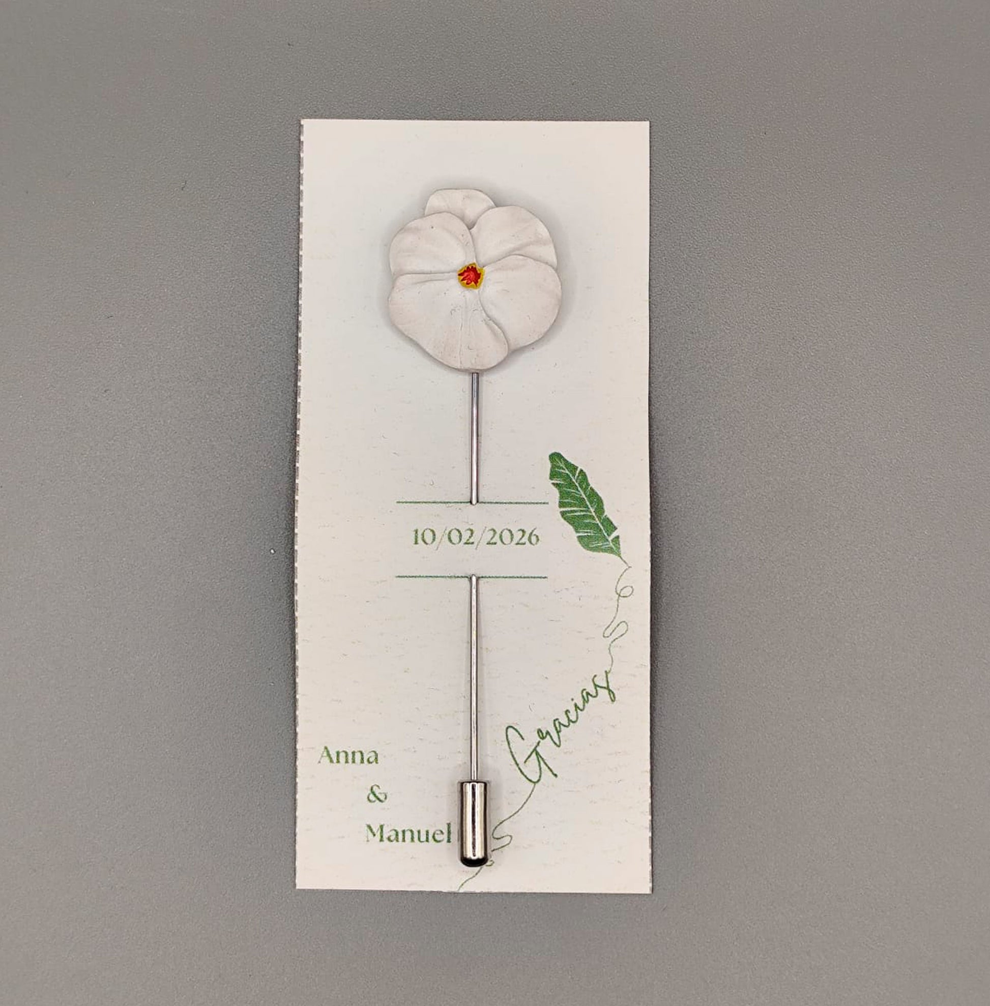 Elegante alfiler de boda con una delicada flor de resina pintada a mano, perfecto como detalle para la novia, damas de honor o invitados especiales.