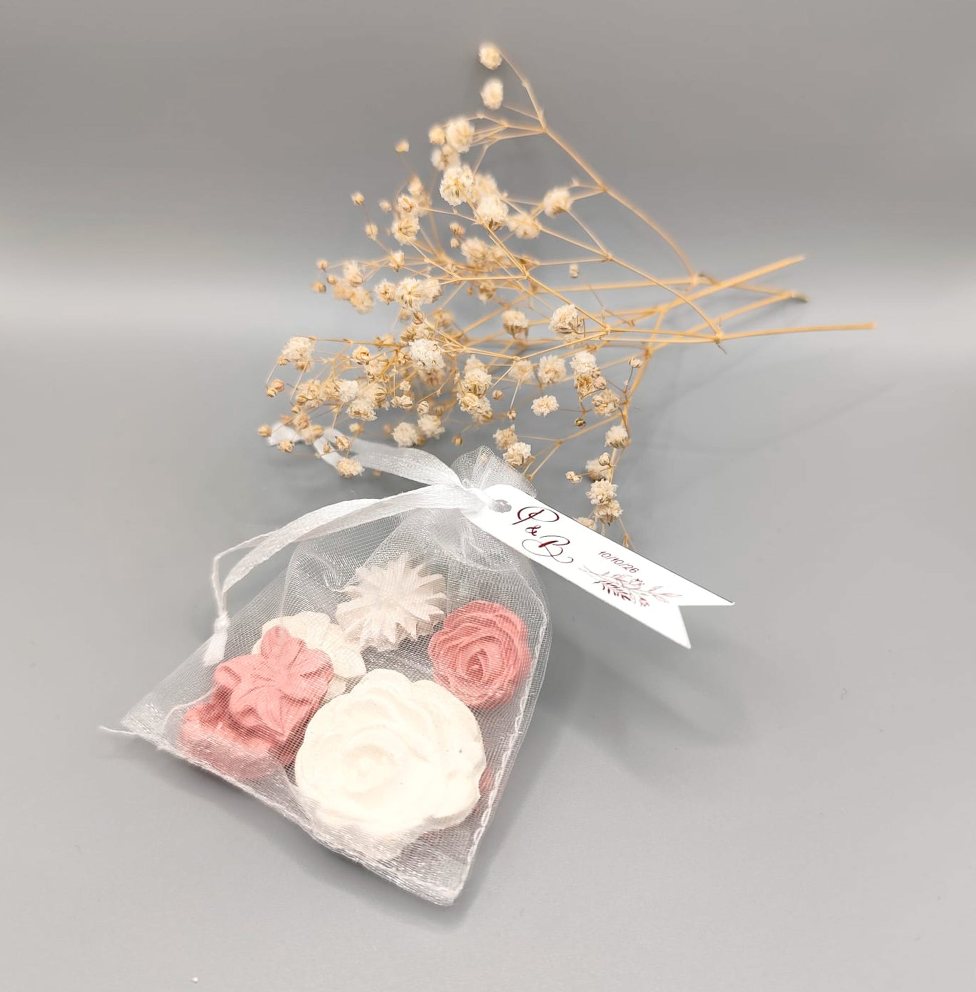 Un detalle sencillo, perfumado y lleno de encanto, ideal para regalar en bodas o celebraciones especiales.