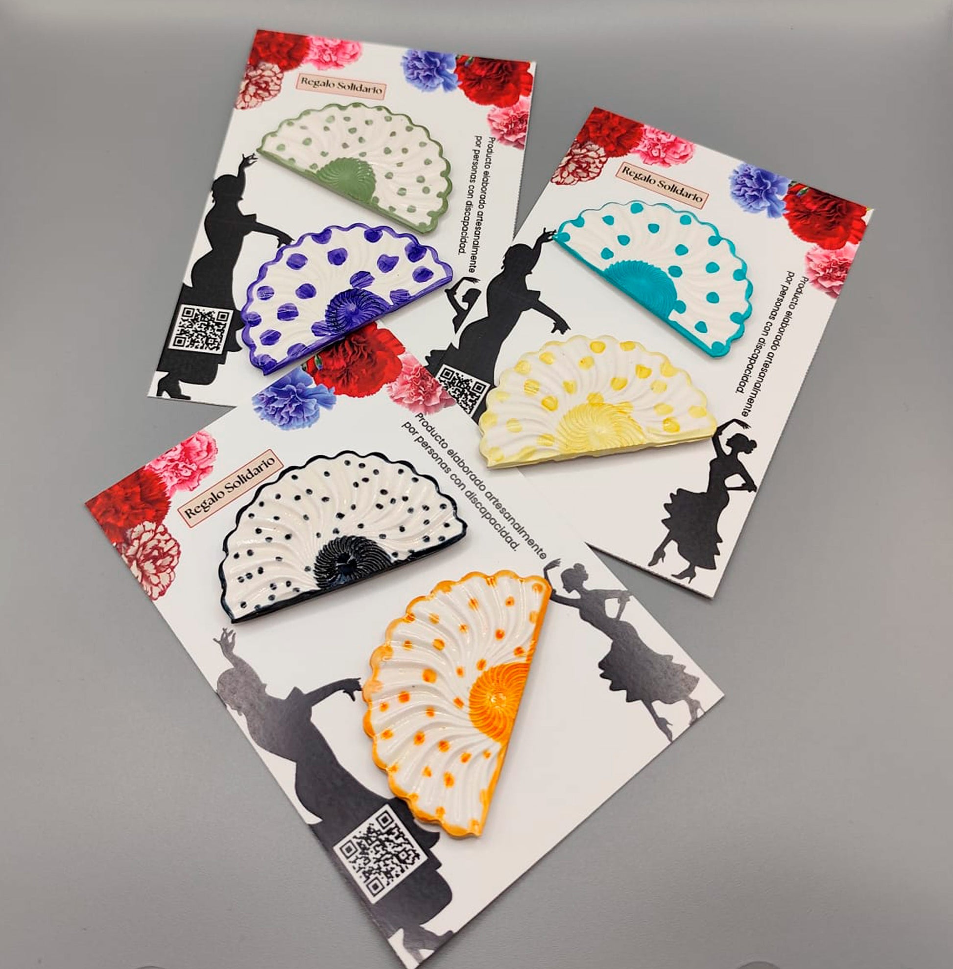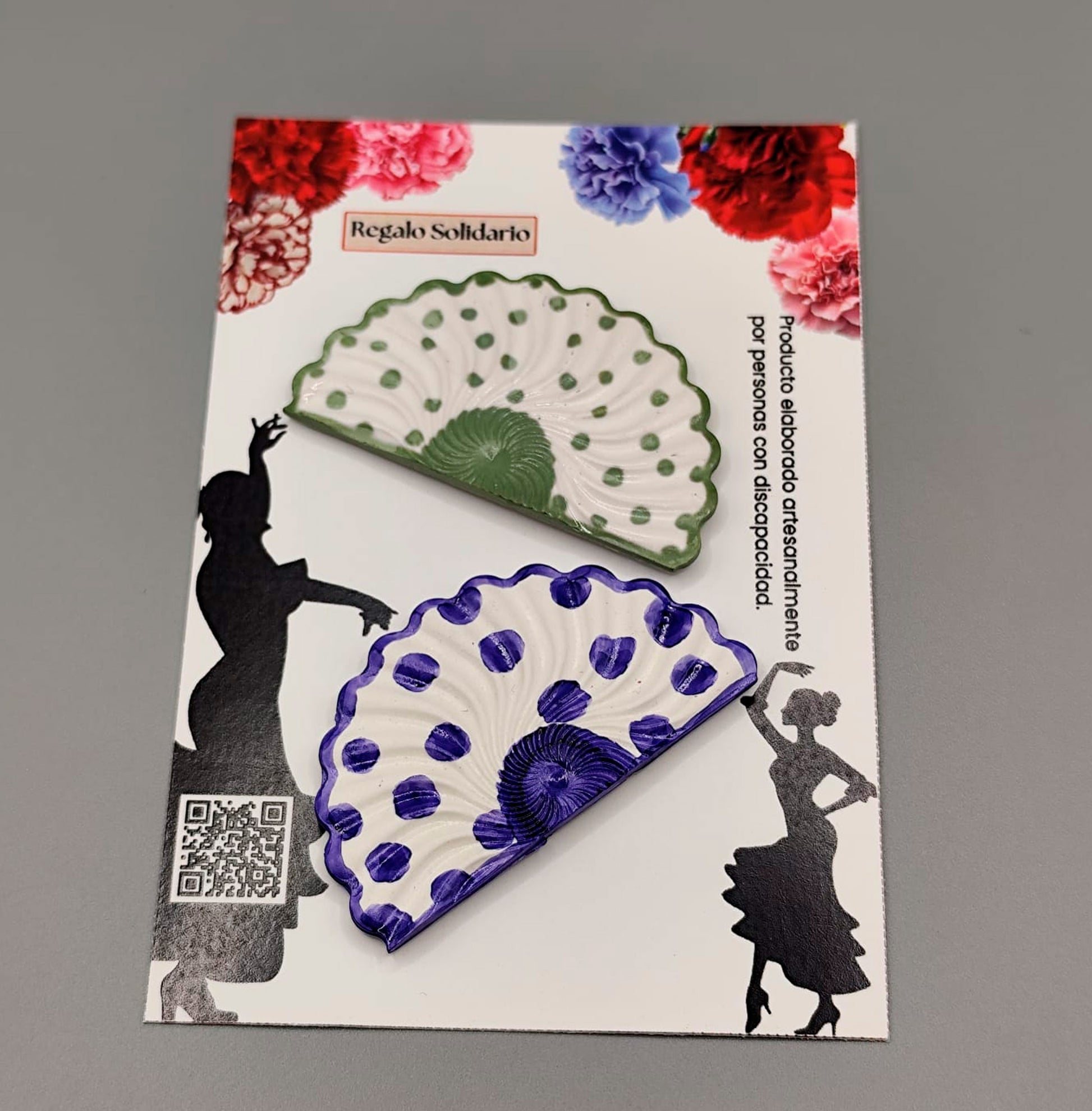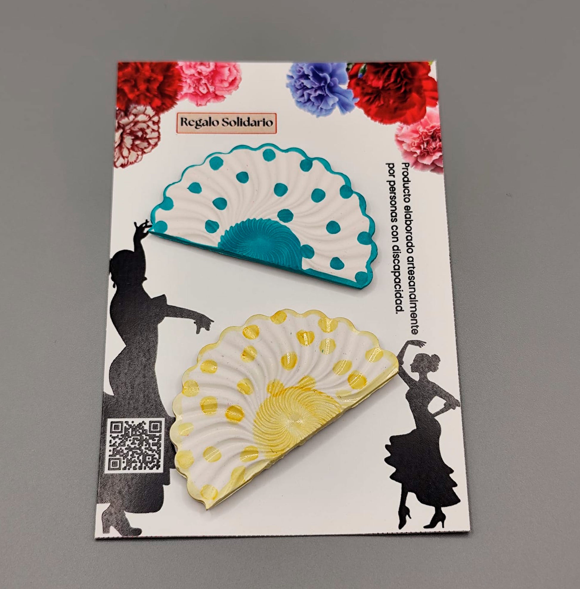 Pack de dos imanes con forma de abanico, elaborados artesanalmente en resina y pintados a mano.