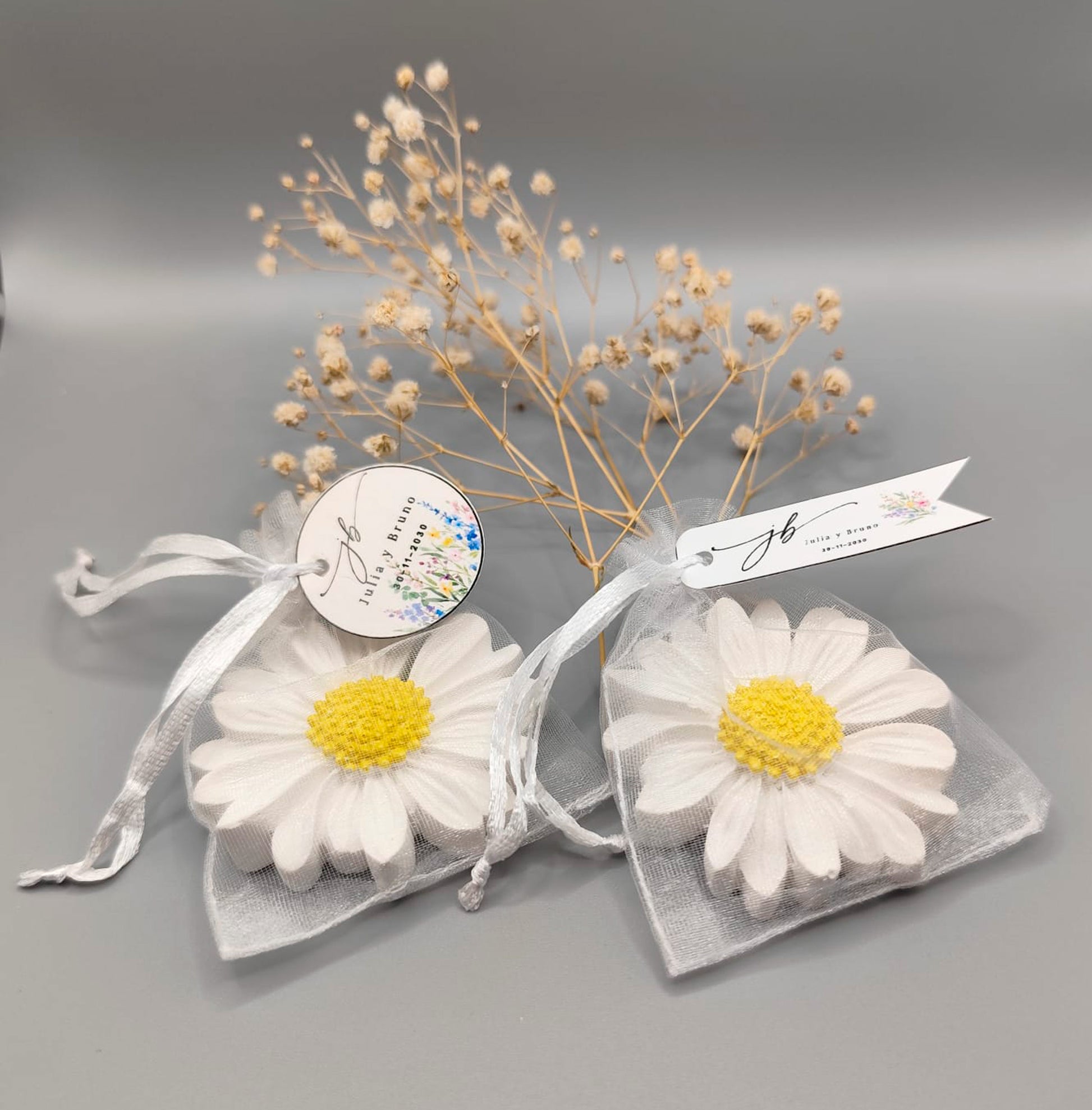 Detalles de boda, regalos para invitados o recuerdos artesanales con un toque floral.