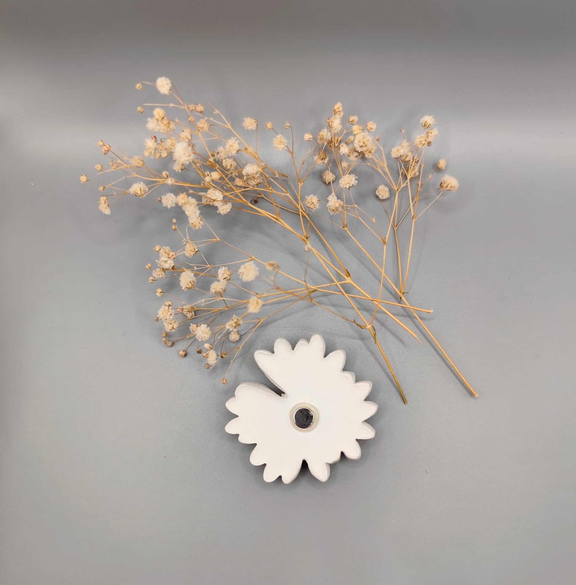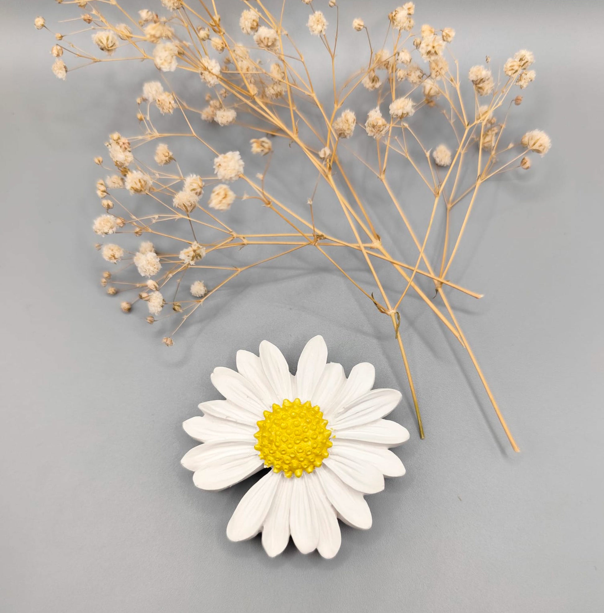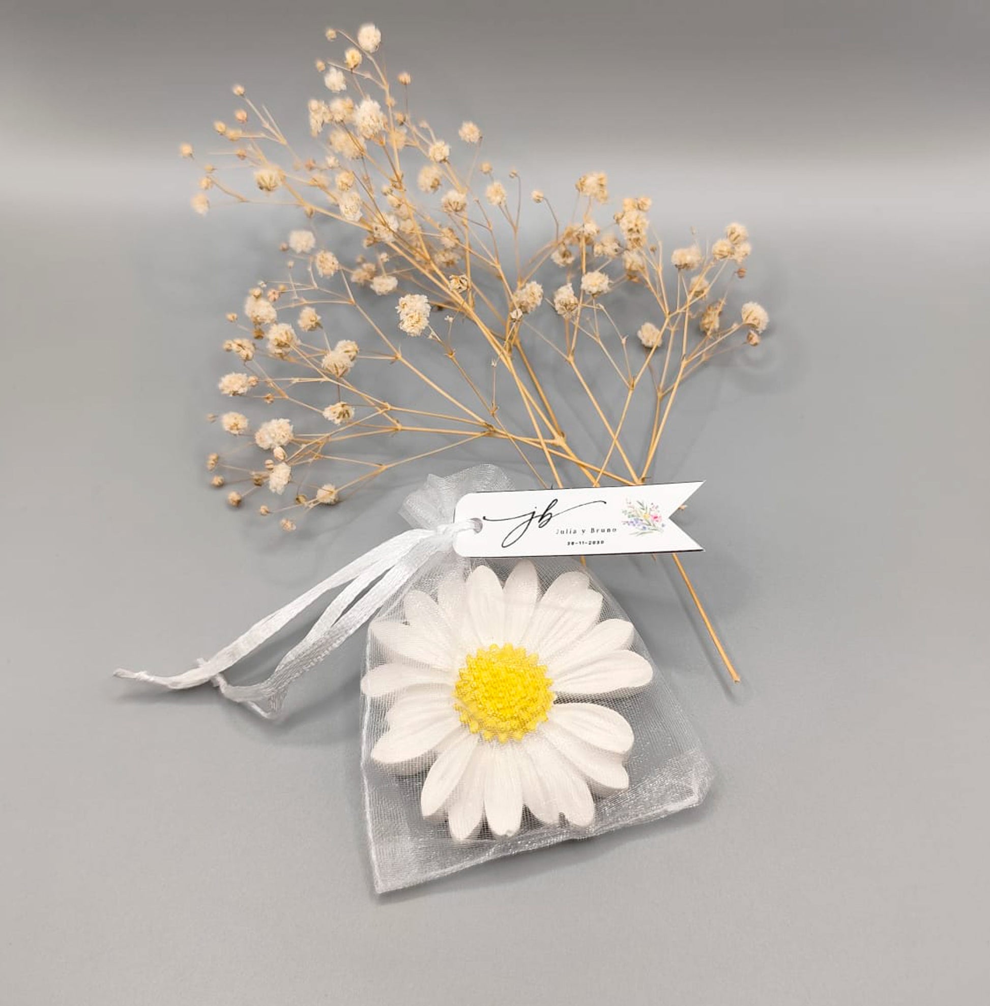 Encantadora margarita de resina, perfecta como recuerdo de boda o detalle para invitados.