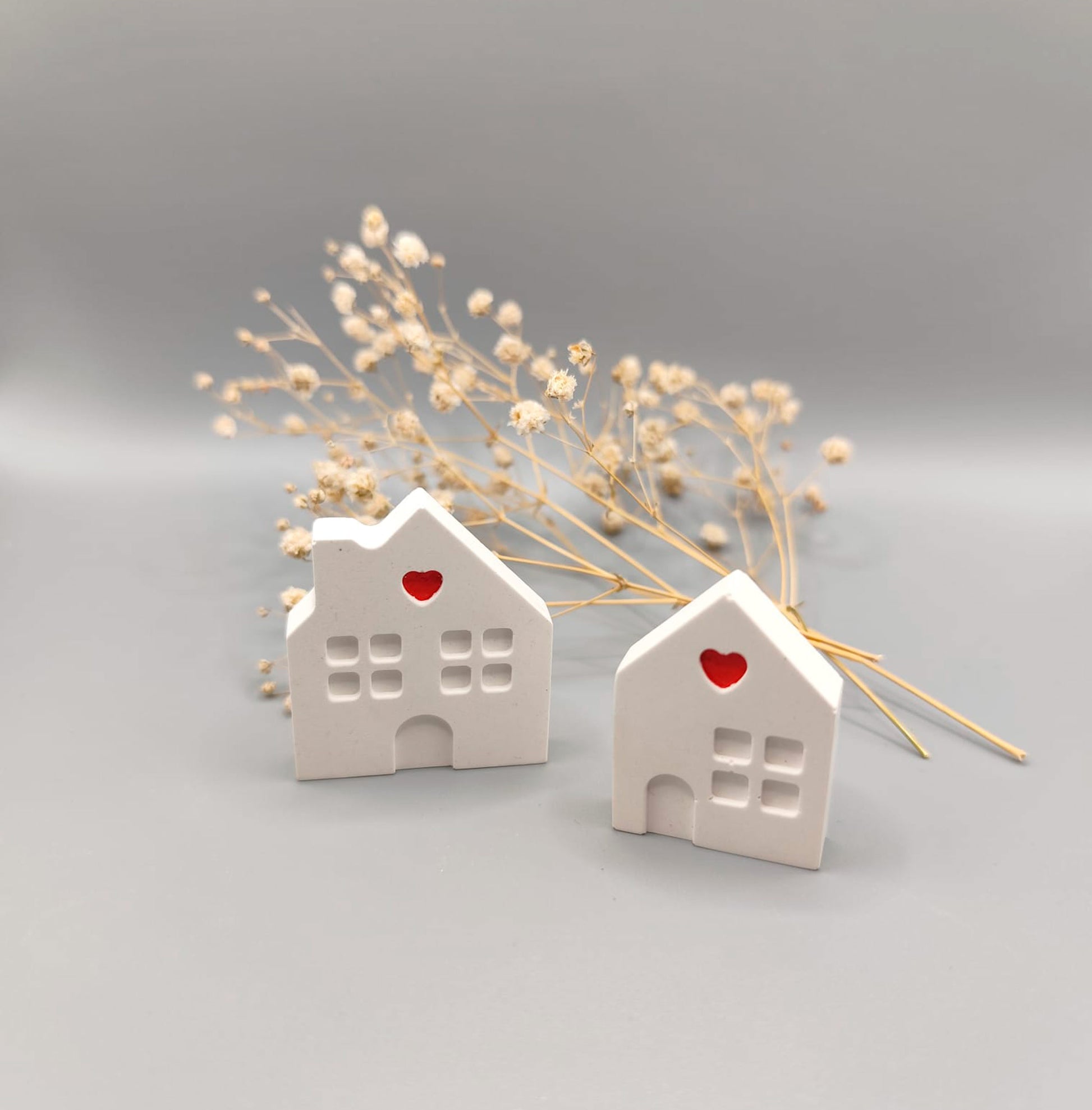 Delicada casita de resina, decorada con un corazón pintado a mano, perfecta como recuerdo de boda o detalle para invitados.